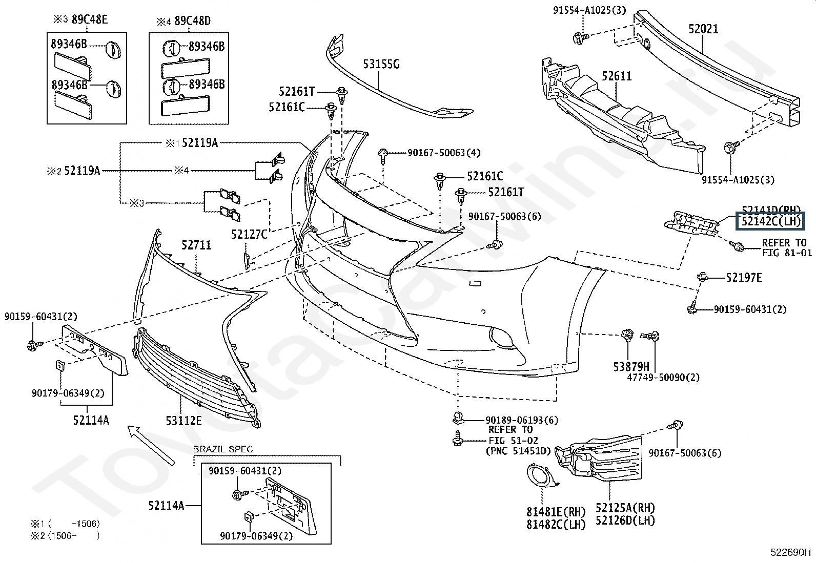 52146-33070, Направляющая бампера левая