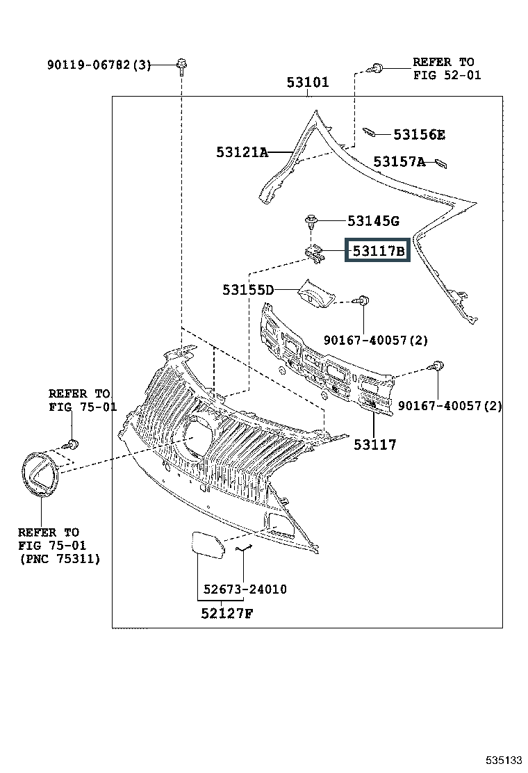 52147-24040, BRACKET, RADIATOR GRILLE, LOWER