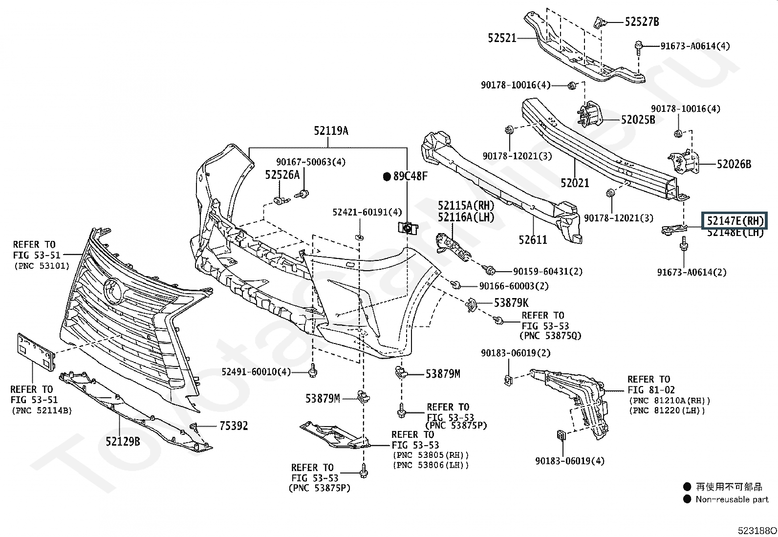 52147-60110, BRACKET, FRONT BUMPER MOUNTING, LH