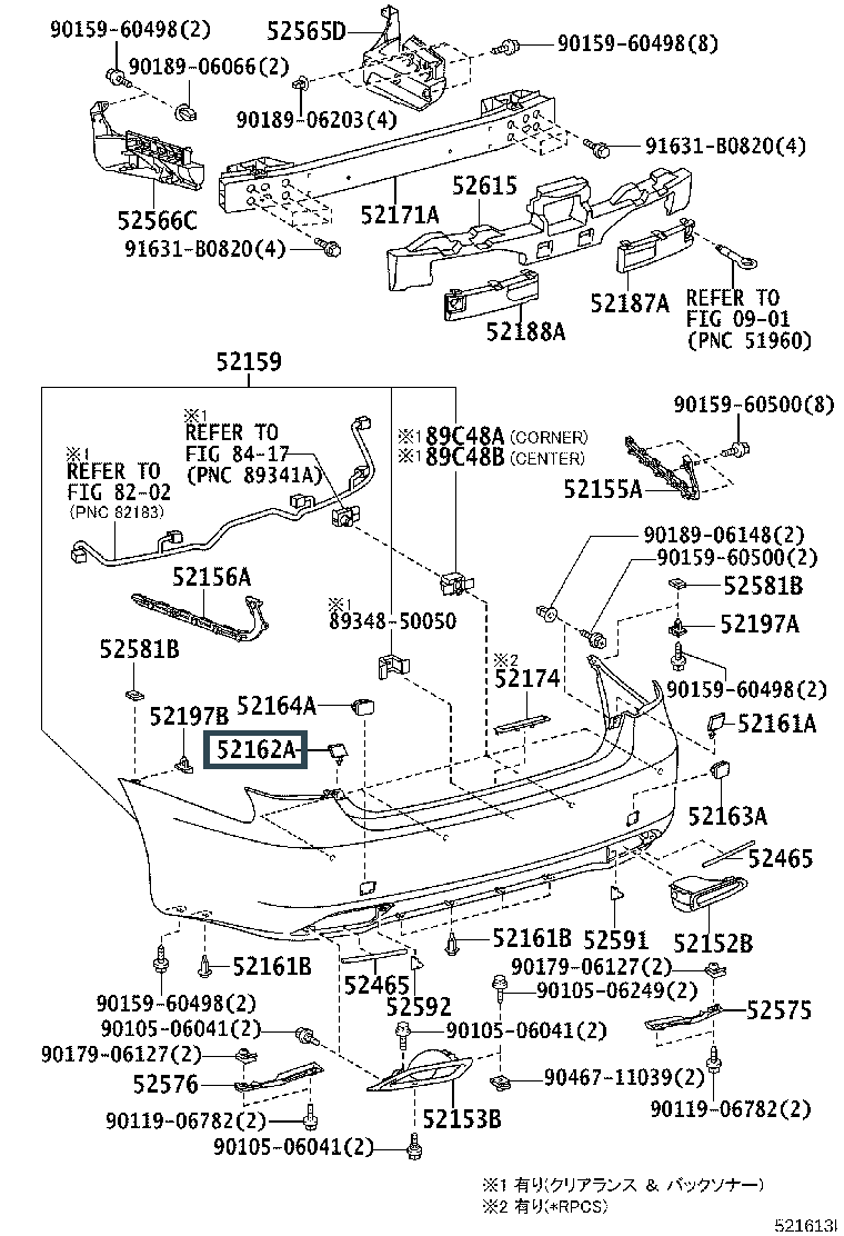 52162-50020-B1, PIECE, REAR BUMPER, LH