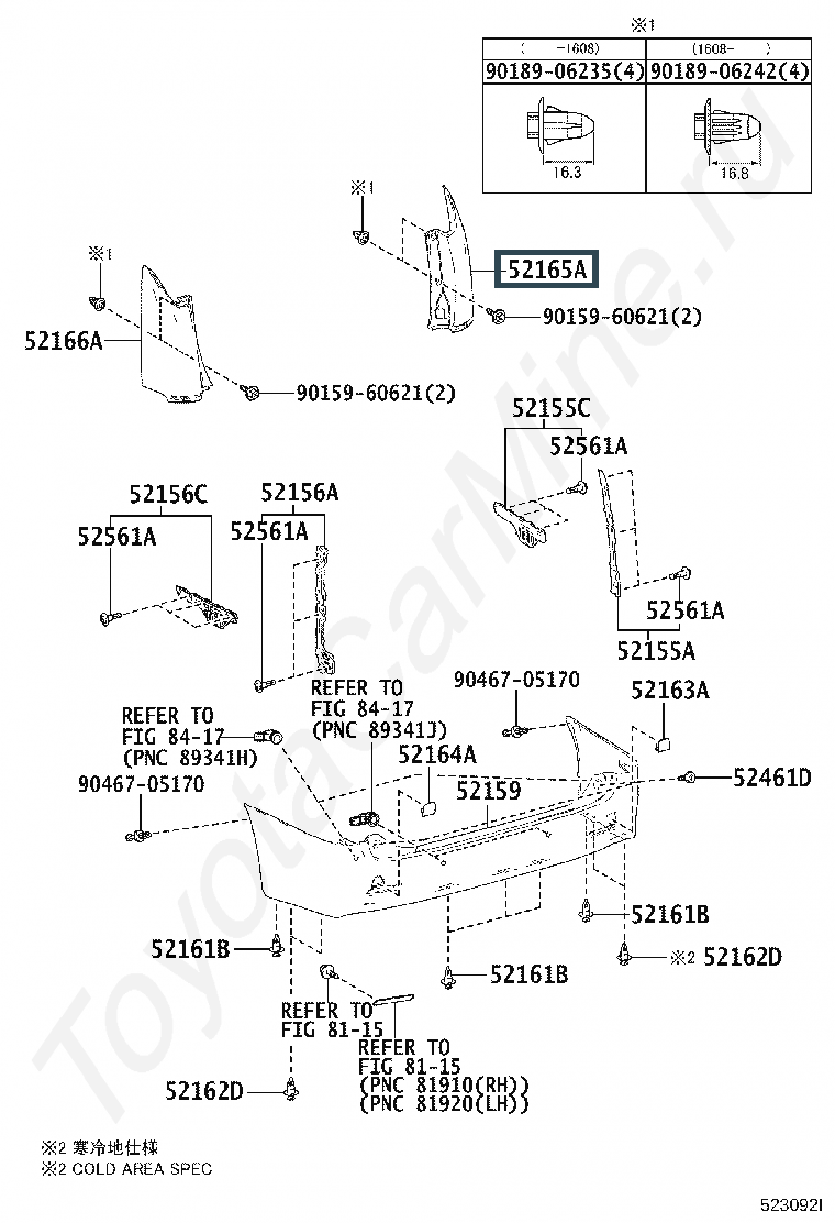 52165-58030-C0, COVER, REAR BUMPER, UPR RH