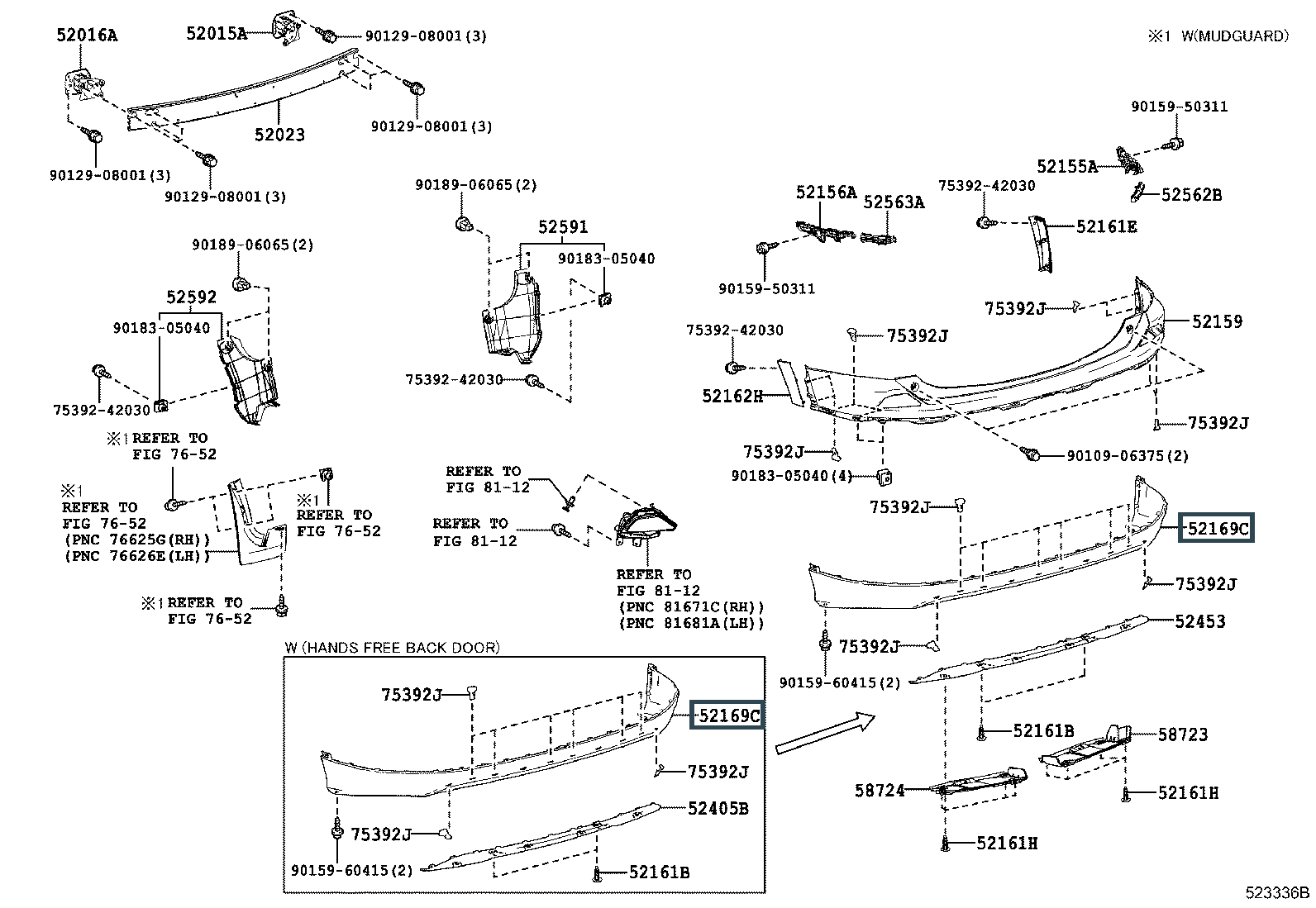 52169-0R070, Нижняя часть заднего бампера