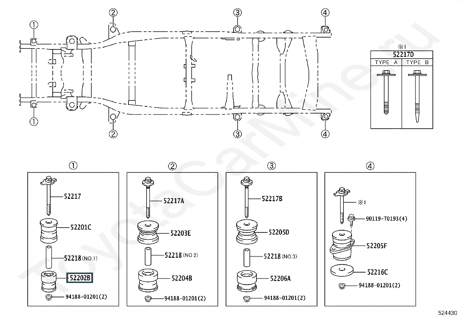 52202-0K100, CUSHIION SUB-ASSY, CAB MOUNTING, NO.1 LOWER