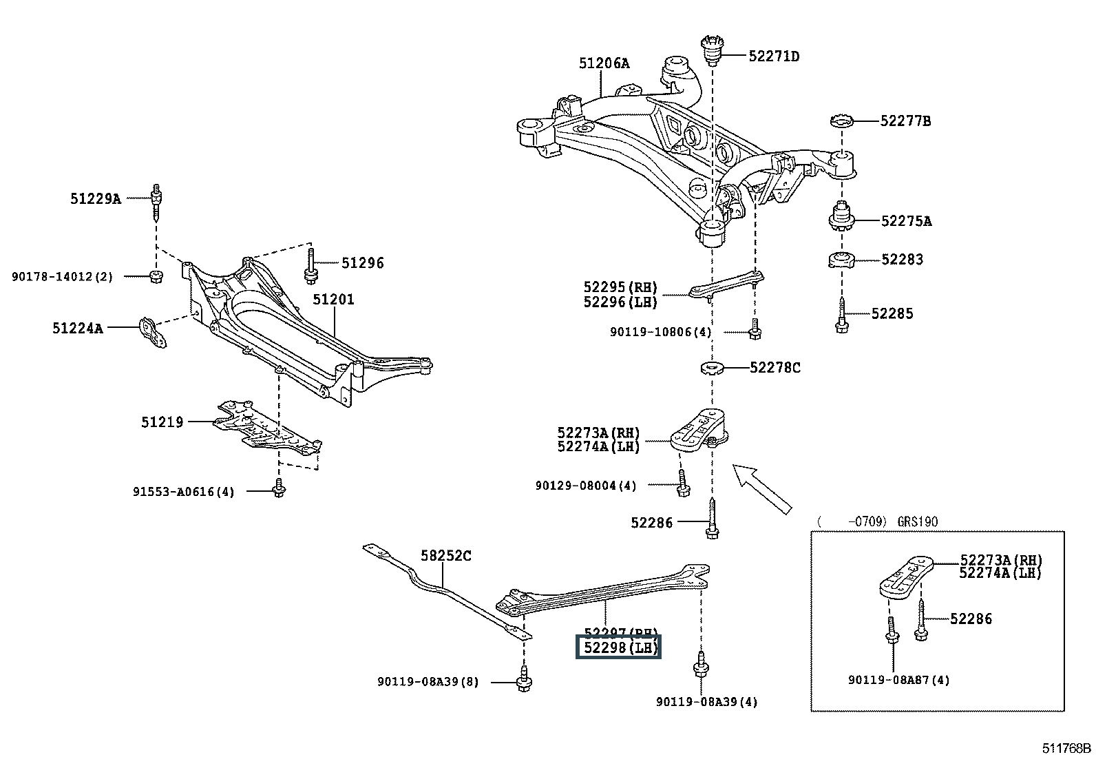 52298-53030, BRACE, REAR SUSPENSION MEMBER, REAR LOWER LH