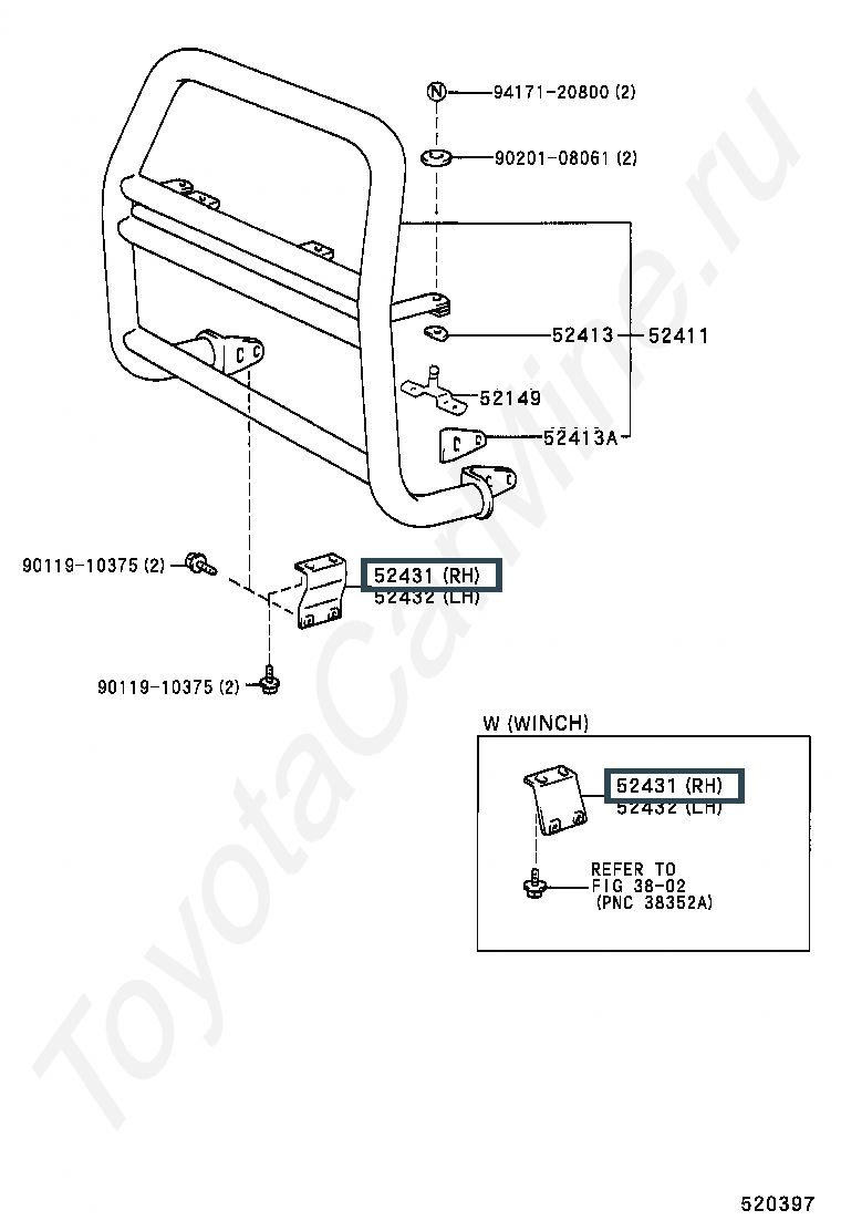 52431-60050, RETAINER, FRONT BUMPER GUARD