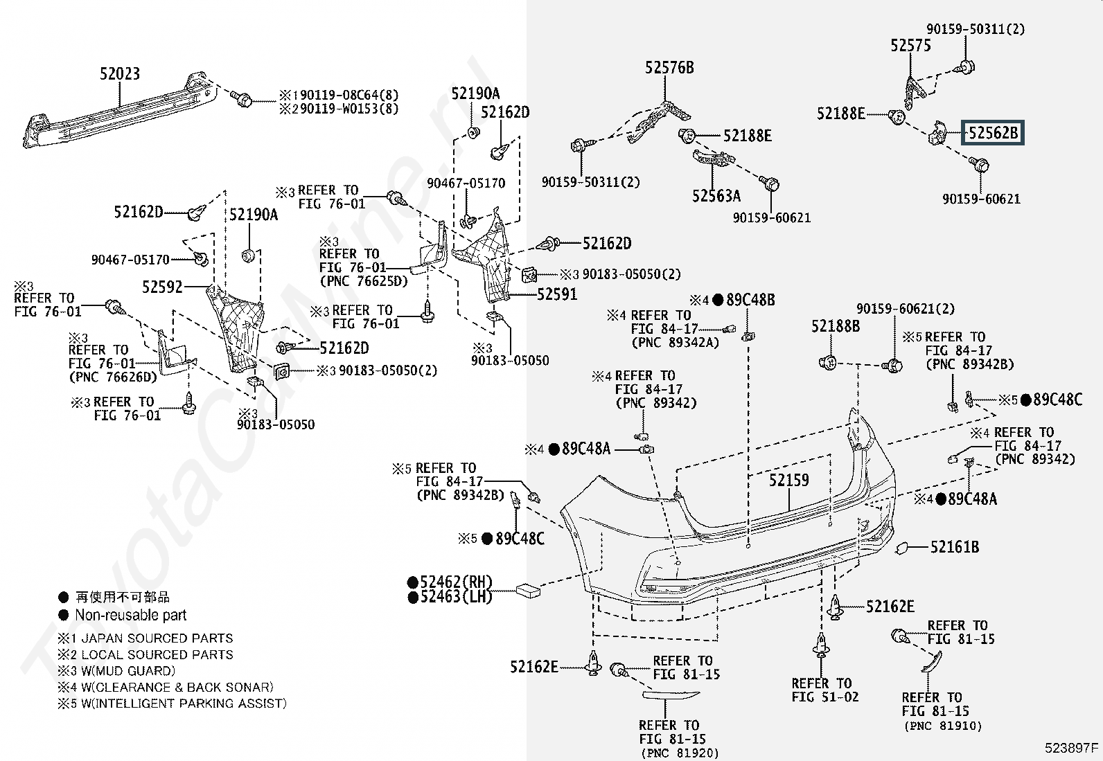 52562-02310, RETAINER, REAR BUMPER, UPPER RH