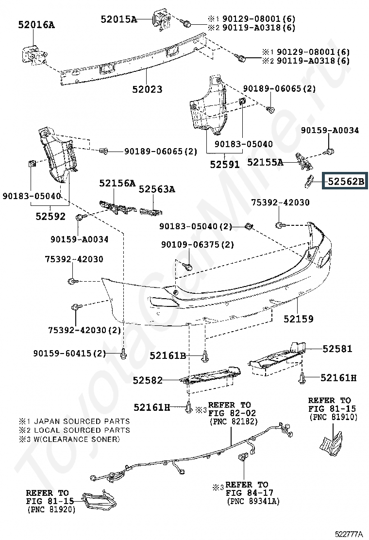 52562-0R030, RETAINER, REAR BUMPER, UPPER RH