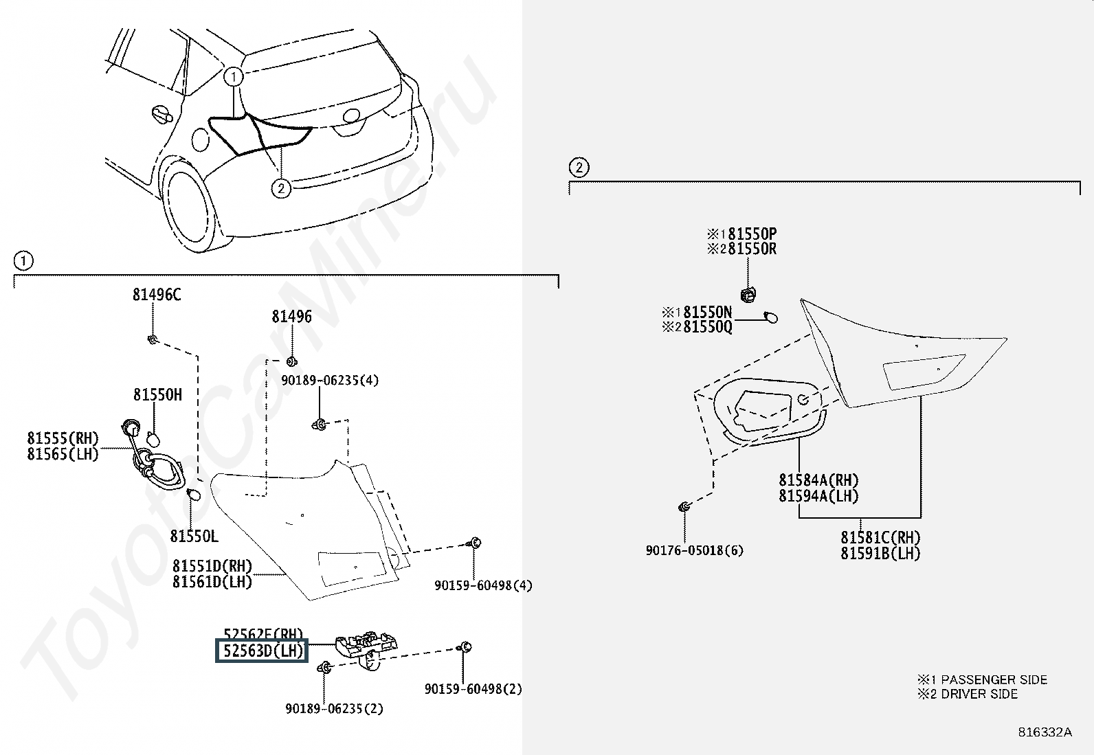 52563-02190, RETAINER, REAR BUMPER, UPPER LH