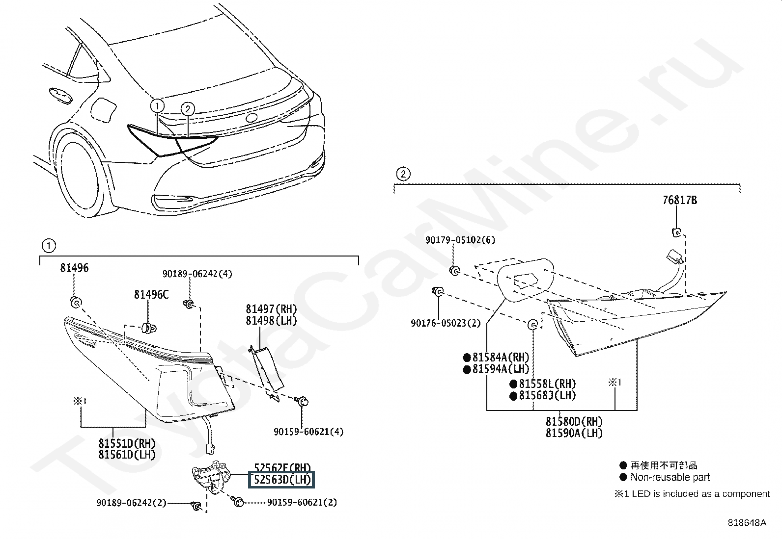 52563-33050, RETAINER, REAR BUMPER, UPPER LH