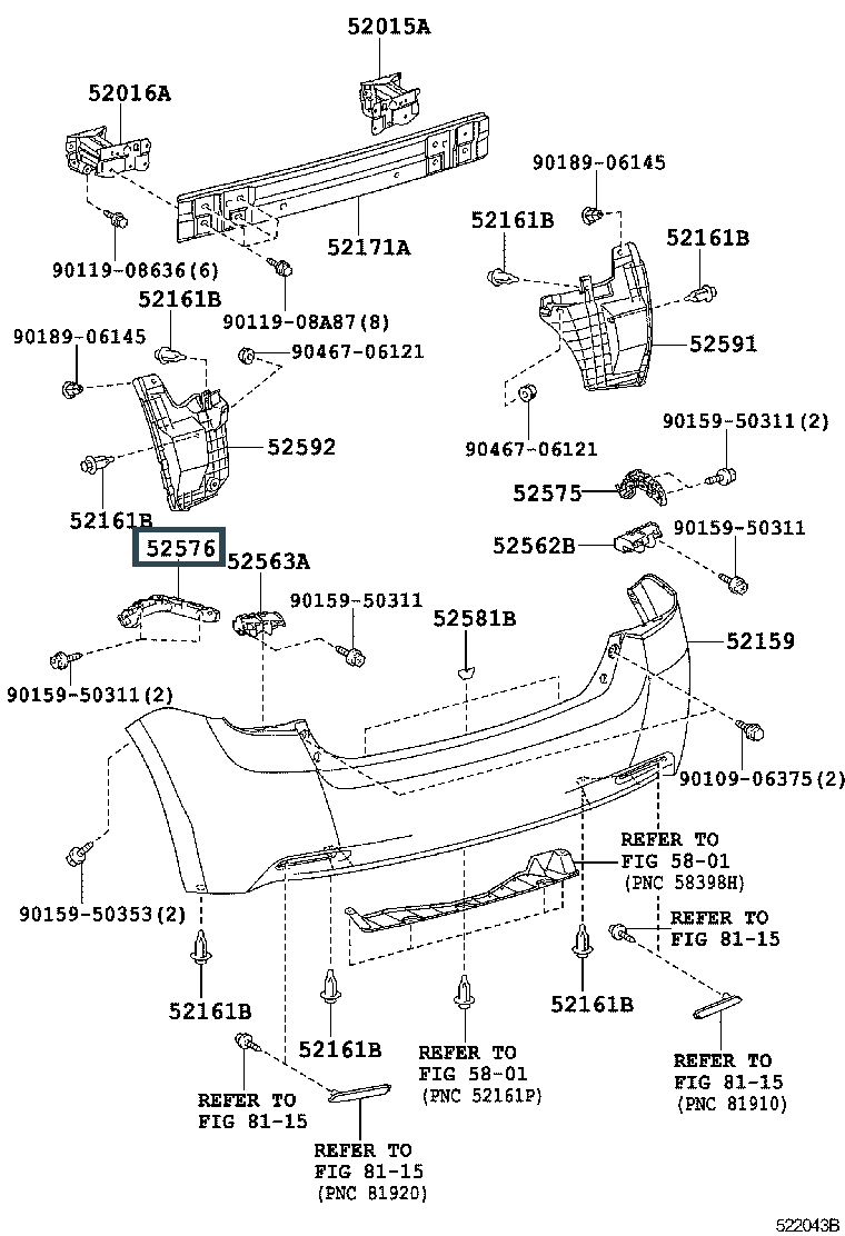 52576-0F020, RETAINER, REAR BUMPER SIDE, LH