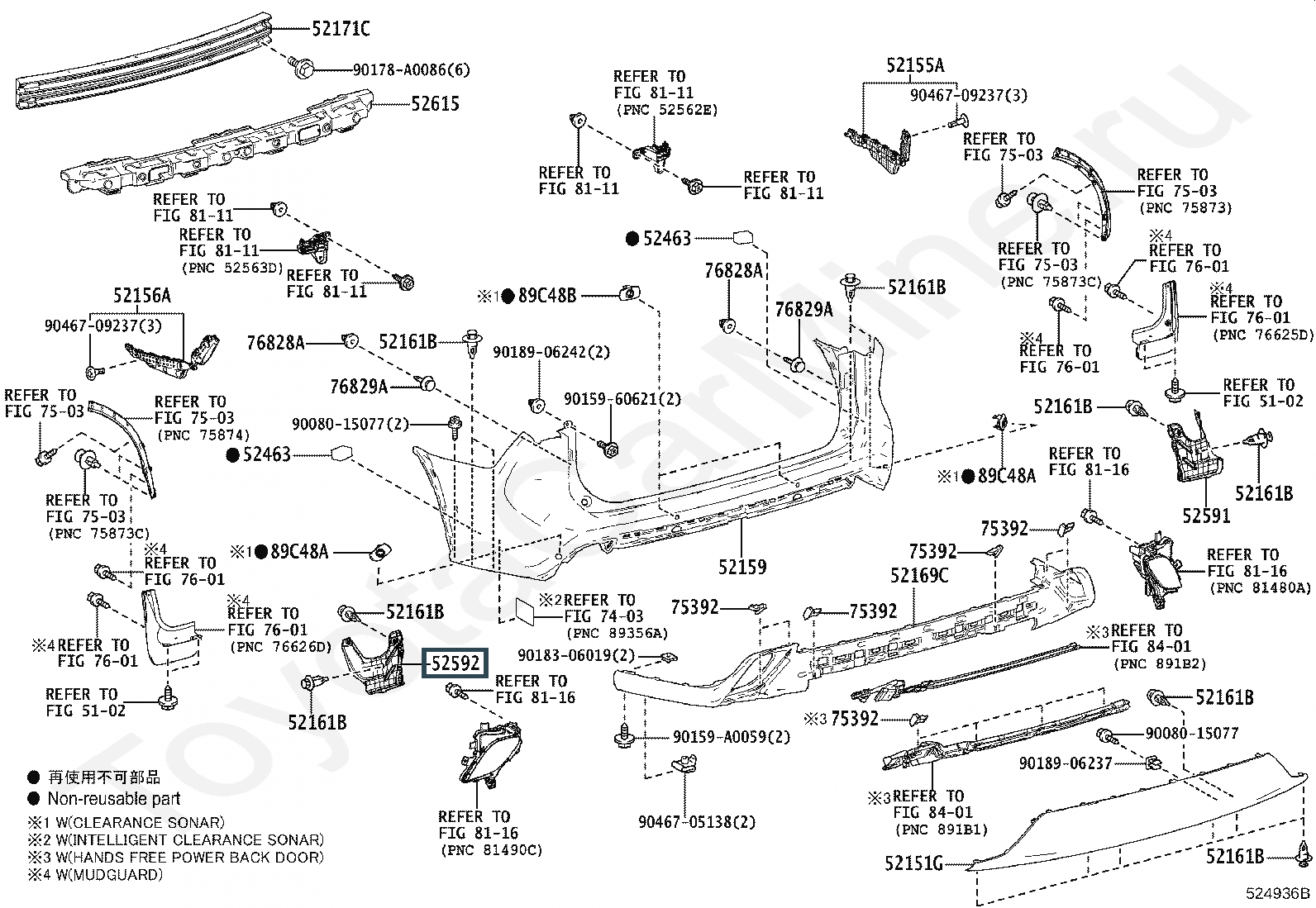 52592-0E090, SEAL, REAR BUMPER SIDE, LH