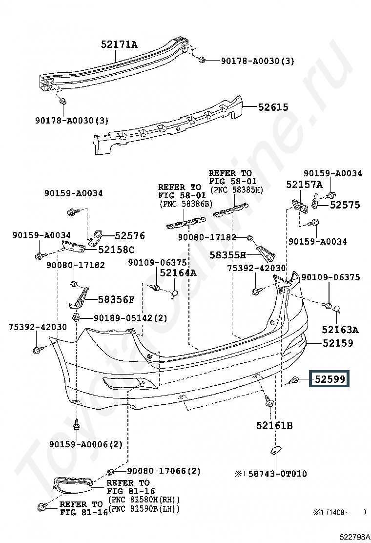 52599-48020, Клипса-ограничитель/stopper, rr bumper,