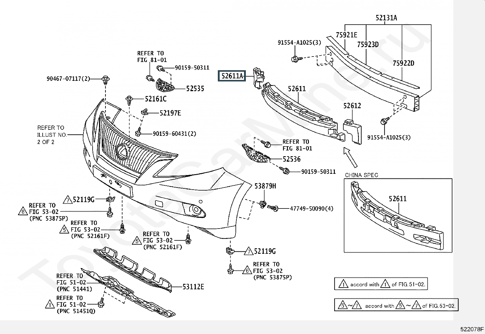 52613-48010, Наполнитель пд бампера правый