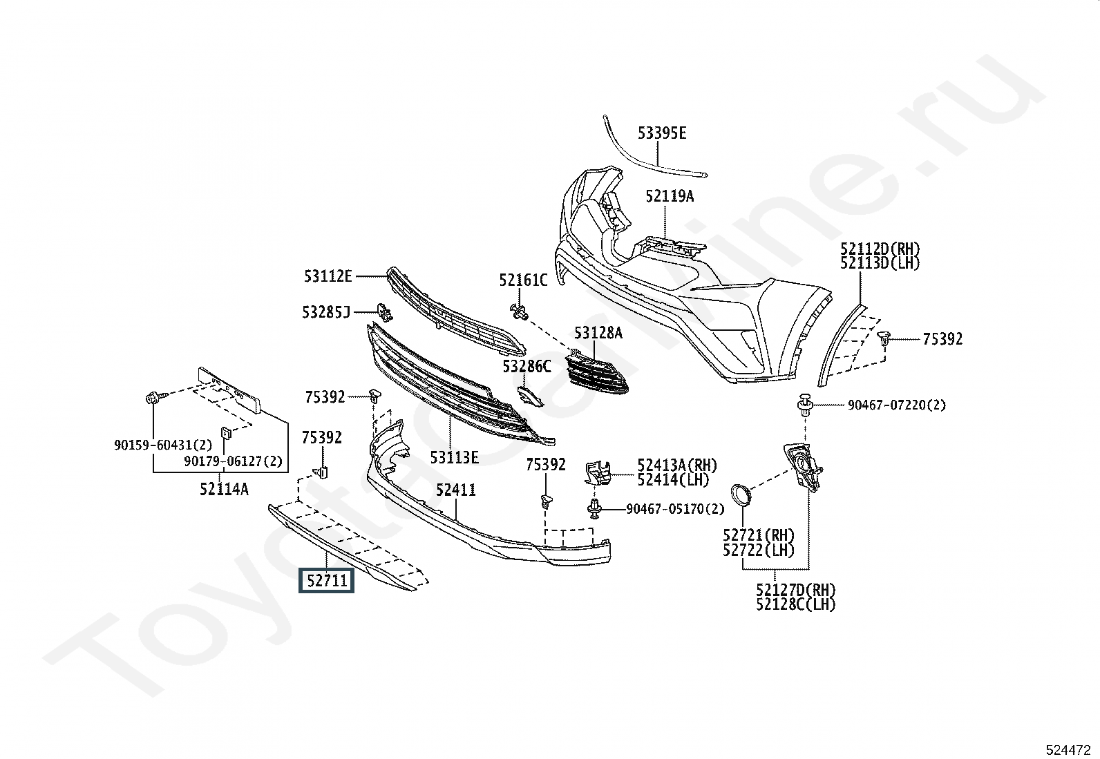 52711-42110-C1, Накладка бампера переднего "серебро"