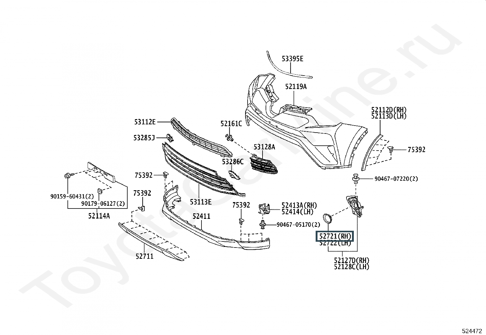 52721-42020, MOULDING, FRONT BUMPER EXTENSION, RH