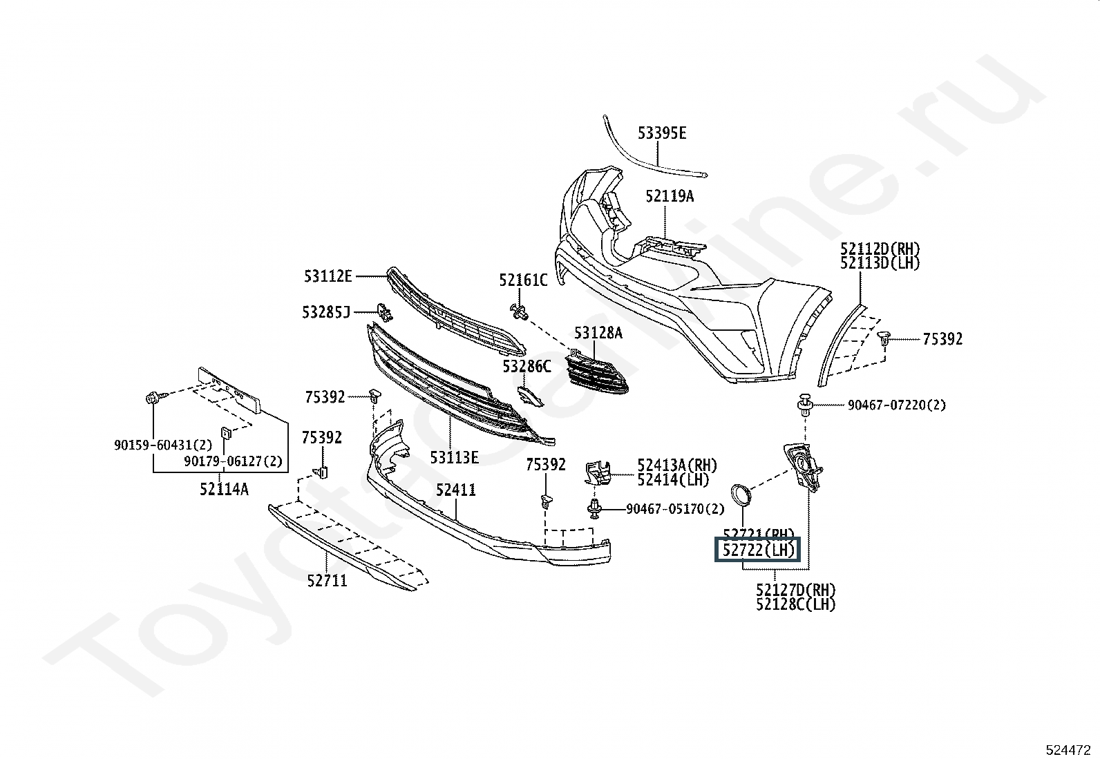 52722-42020, MOULDING, FRONT BUMPER EXTENSION, LH