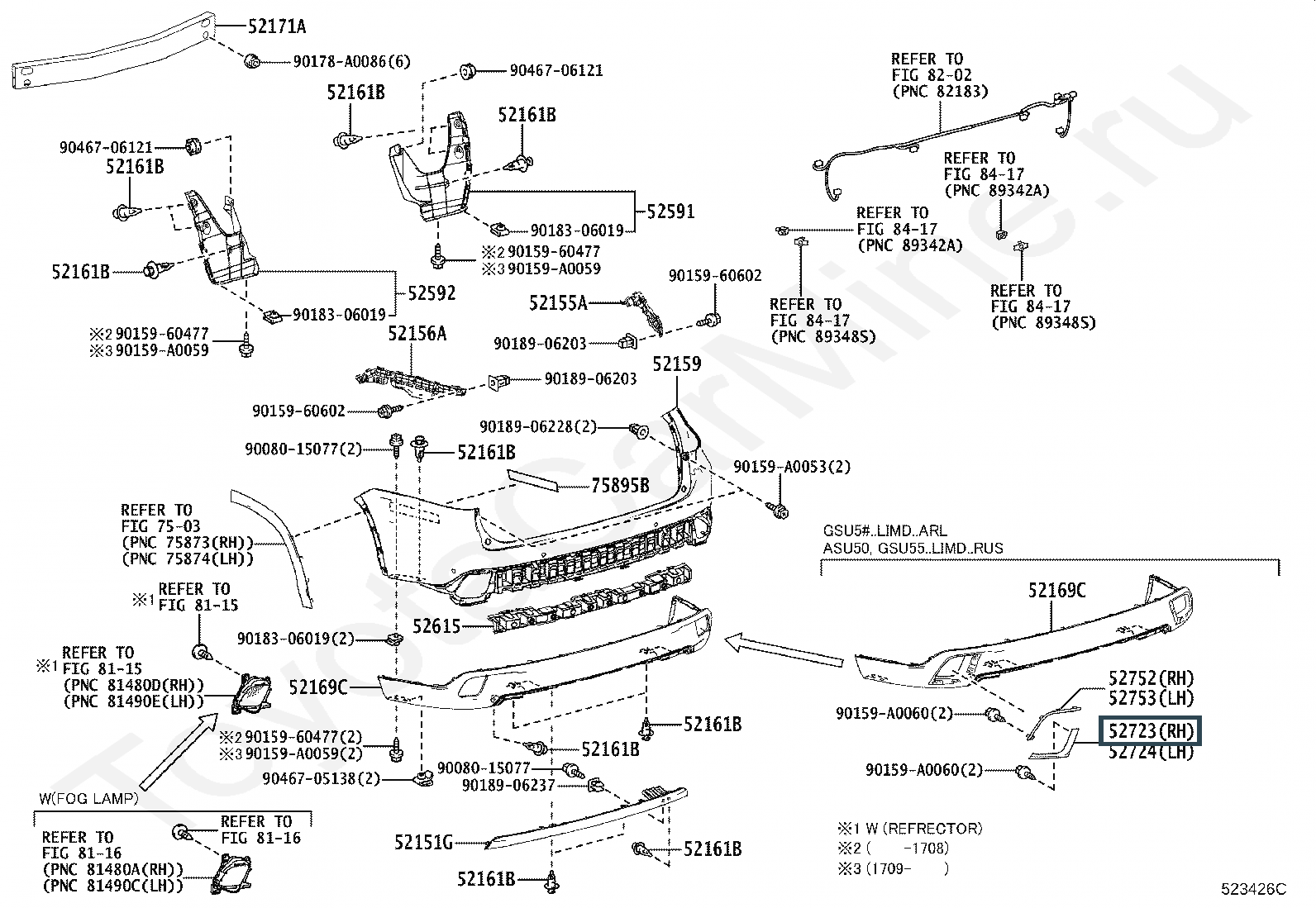 52723-0E020, MOULDING, REAR BUMPER EXTENSION, RH