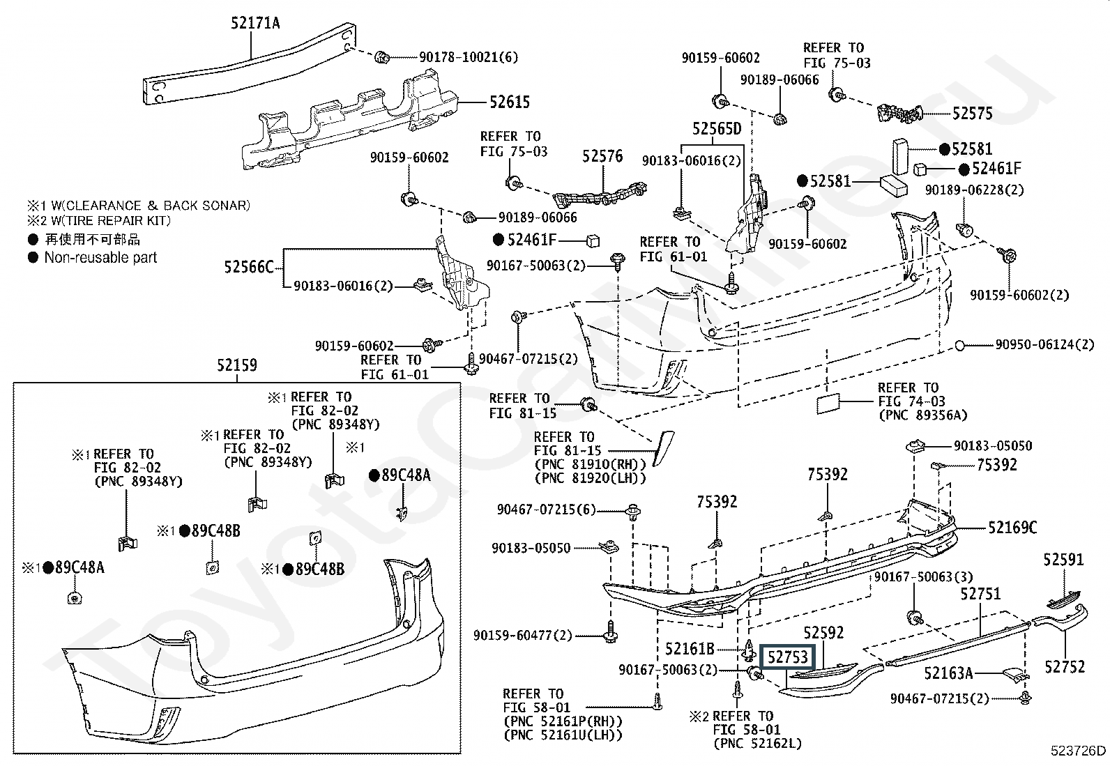 52753-48030, MOULDING, REAR BUMPER SIDE, LH