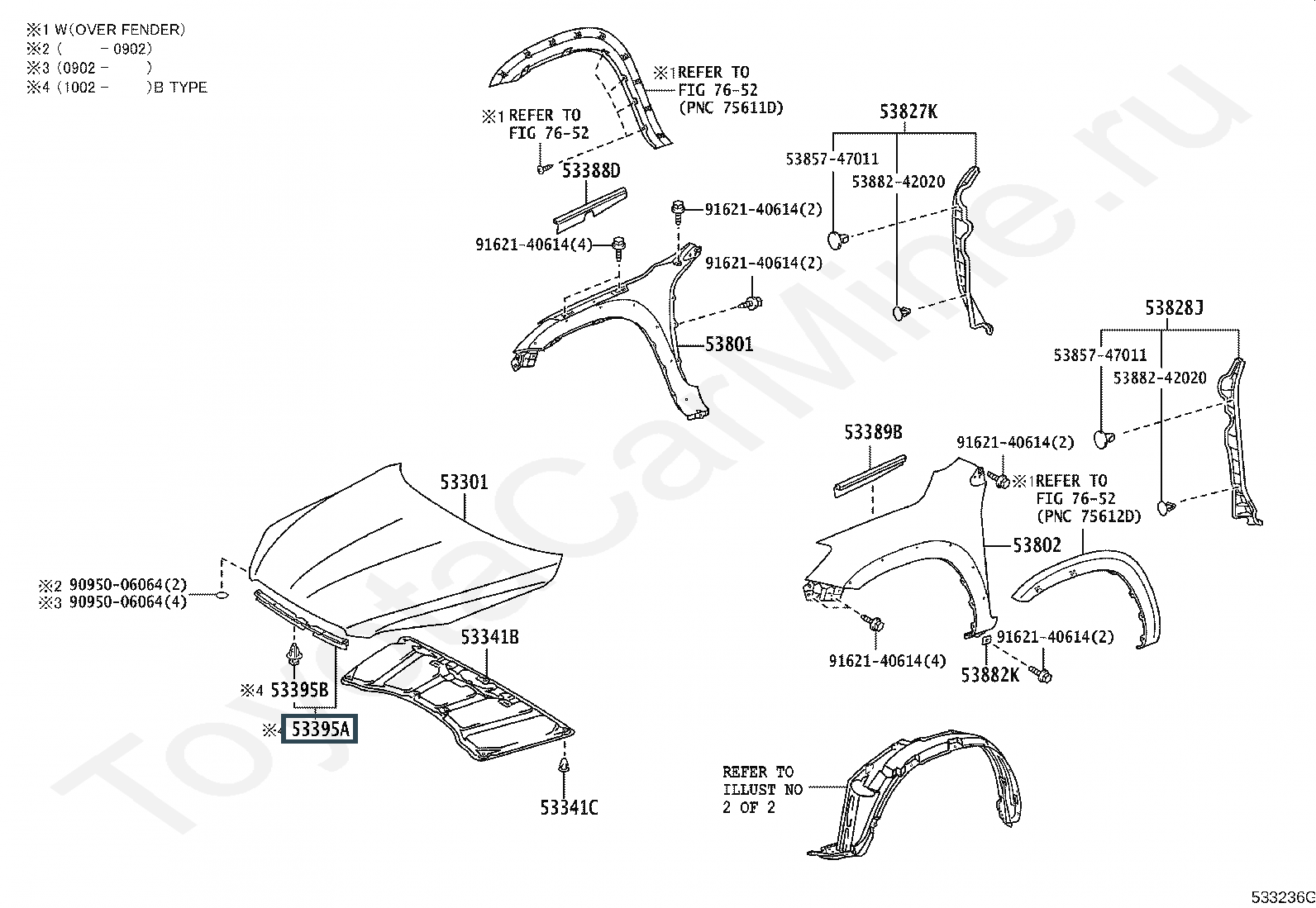 53039-42010, SEAL, HOOD TO FRONT END PANEL, NO.1