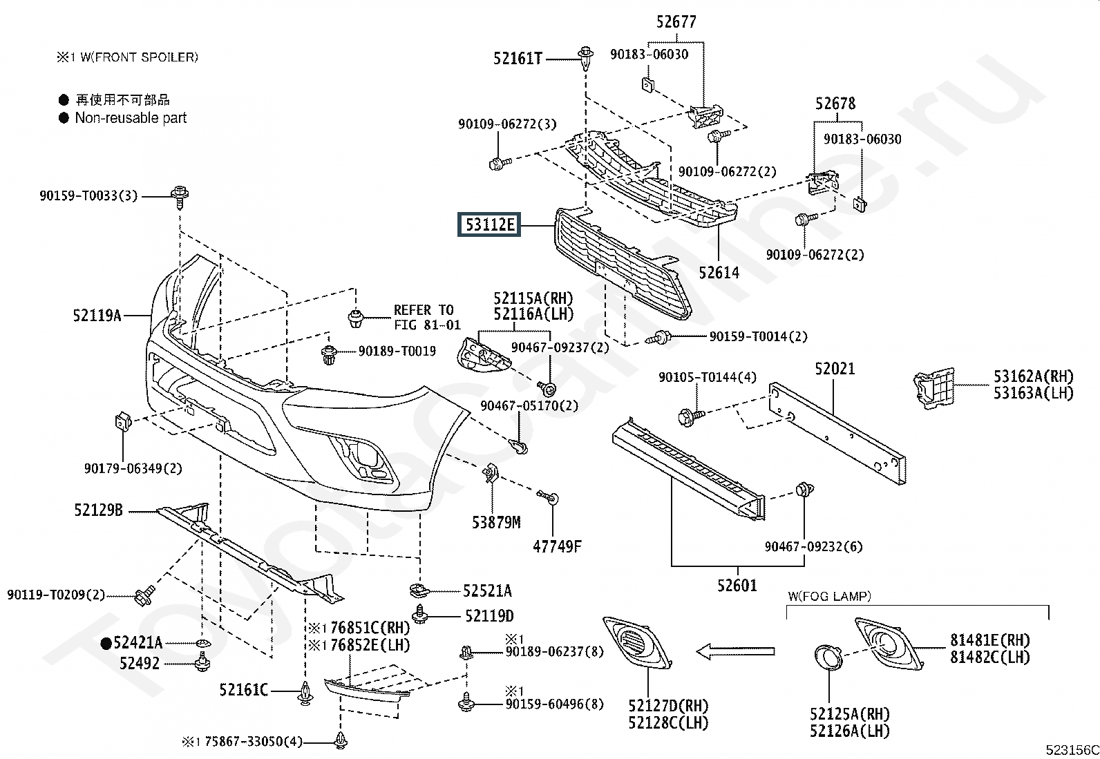 53112-YP050, GRILLE, RADIATOR, LOWER NO.1
