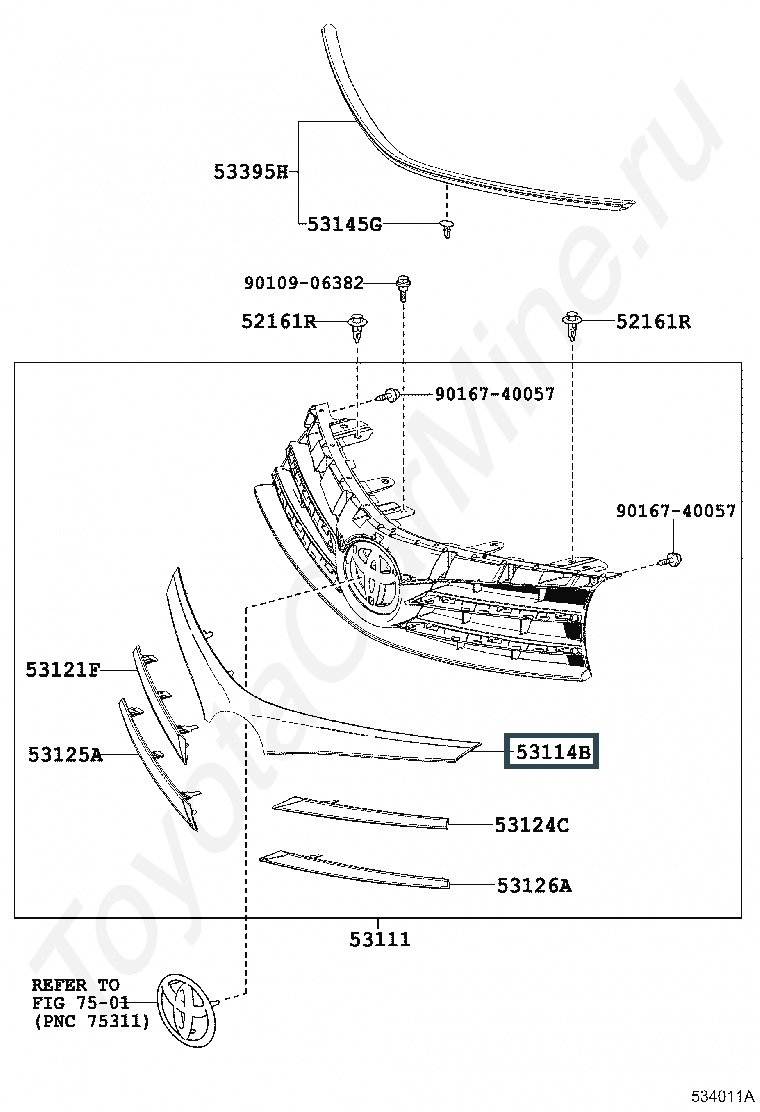 53114-02270, GRILLE, RADIATOR, UPPER