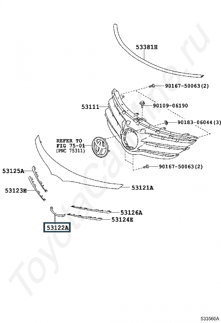 53122-05040, MOULDING, RADIATOR GRILLE, LOWER