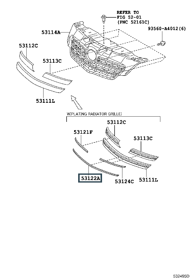 53122-12170, MOULDING, RADIATOR GRILLE, LOWER
