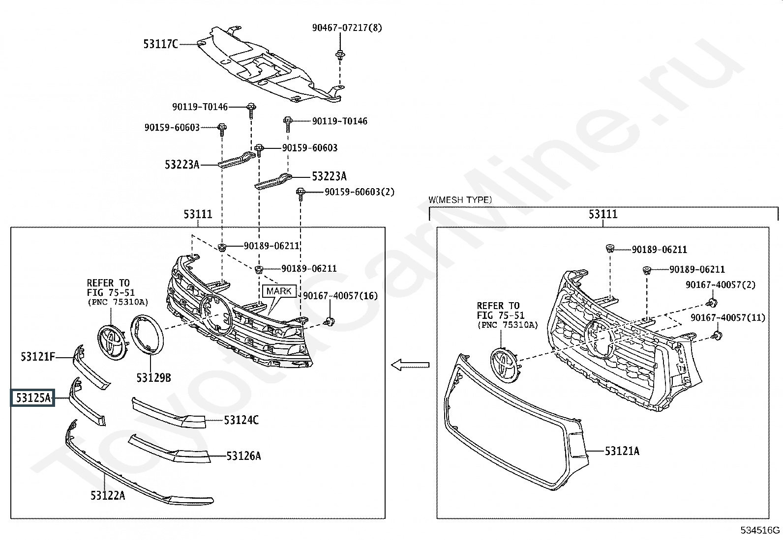 53123-0K240, MOULDING, RADIATOR GRILLE, CENTER RH