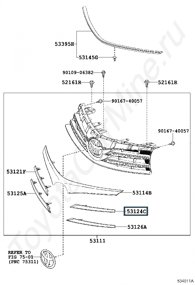 53124-02320, MOULDING, RADIATOR GRILLE, UPPER LH