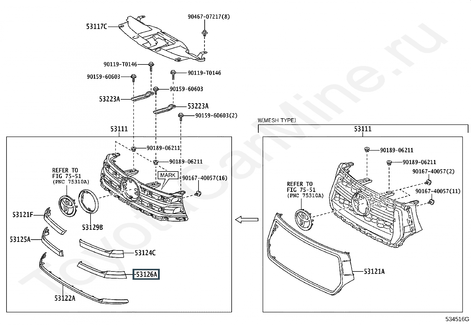 53124-0K270, MOULDING, RADIATOR GRILLE, CENTER LH