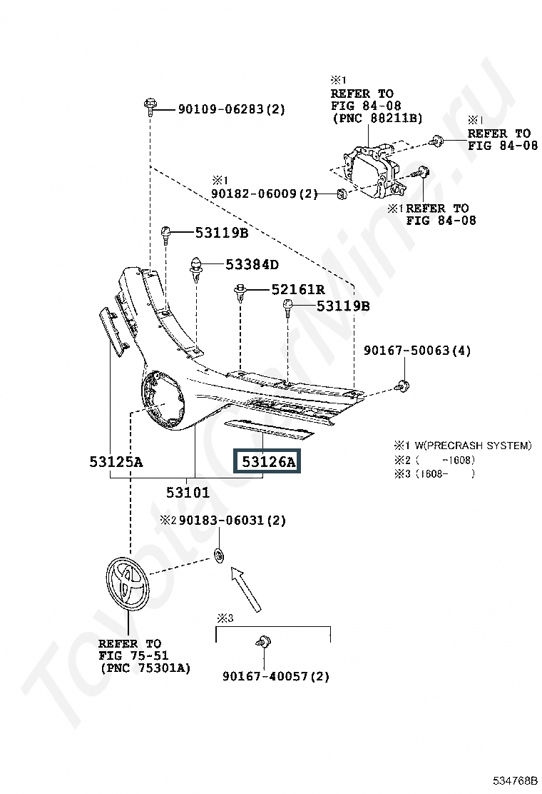 53126-42100, MOULDING, RADIATOR GRILLE, CENTER LH