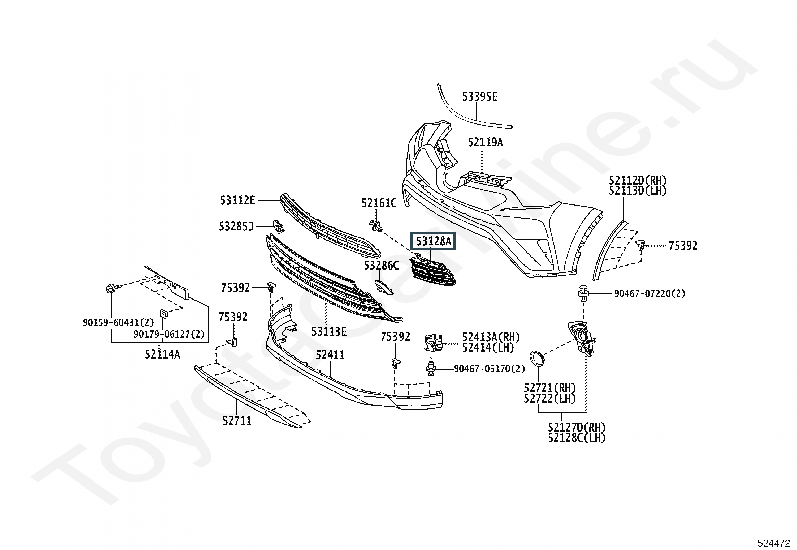 53128-42090, GRILLE, RADIATOR, LOWER LH