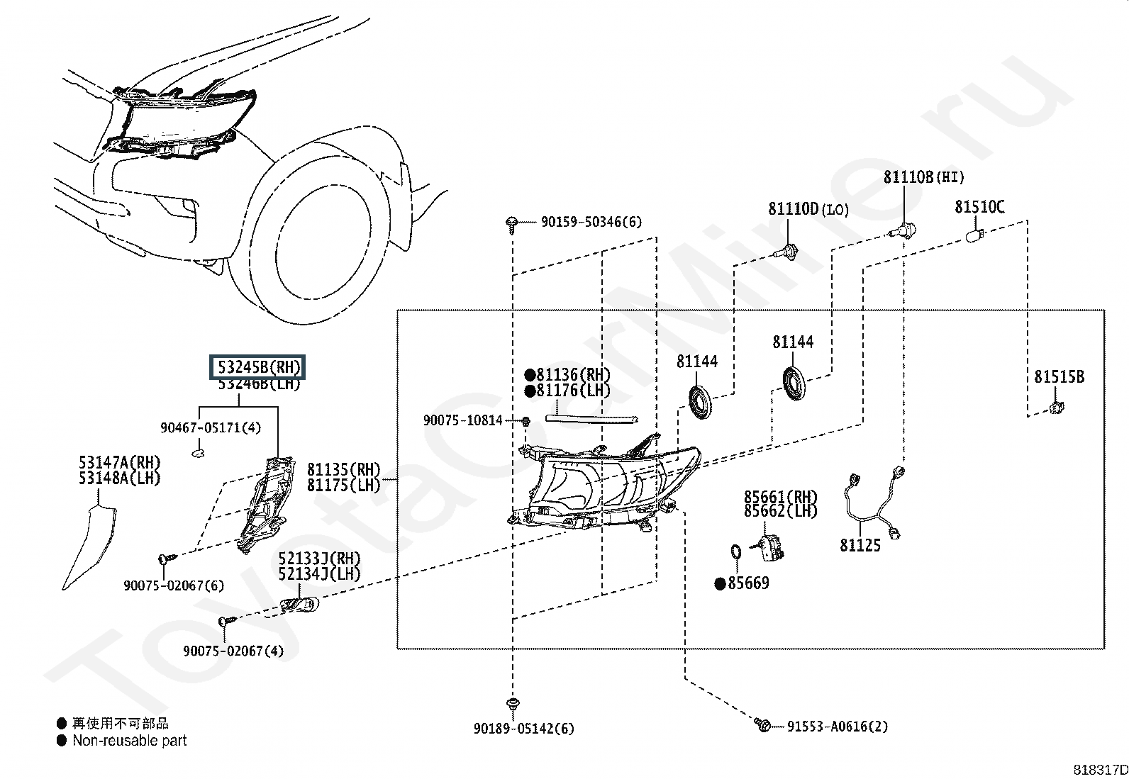 53245-60030, BRACKET, HEADLAMP, RH