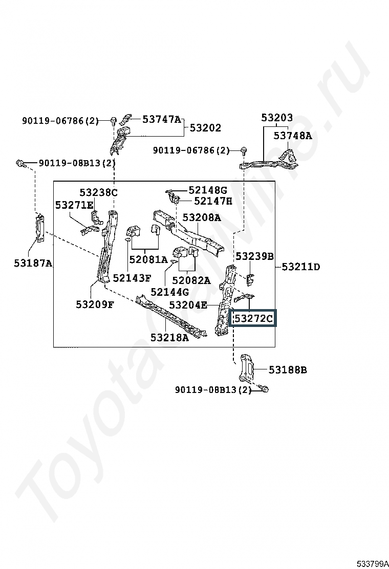 53272-47020, BRACKET, HEADLAMP MOUNTING, LH