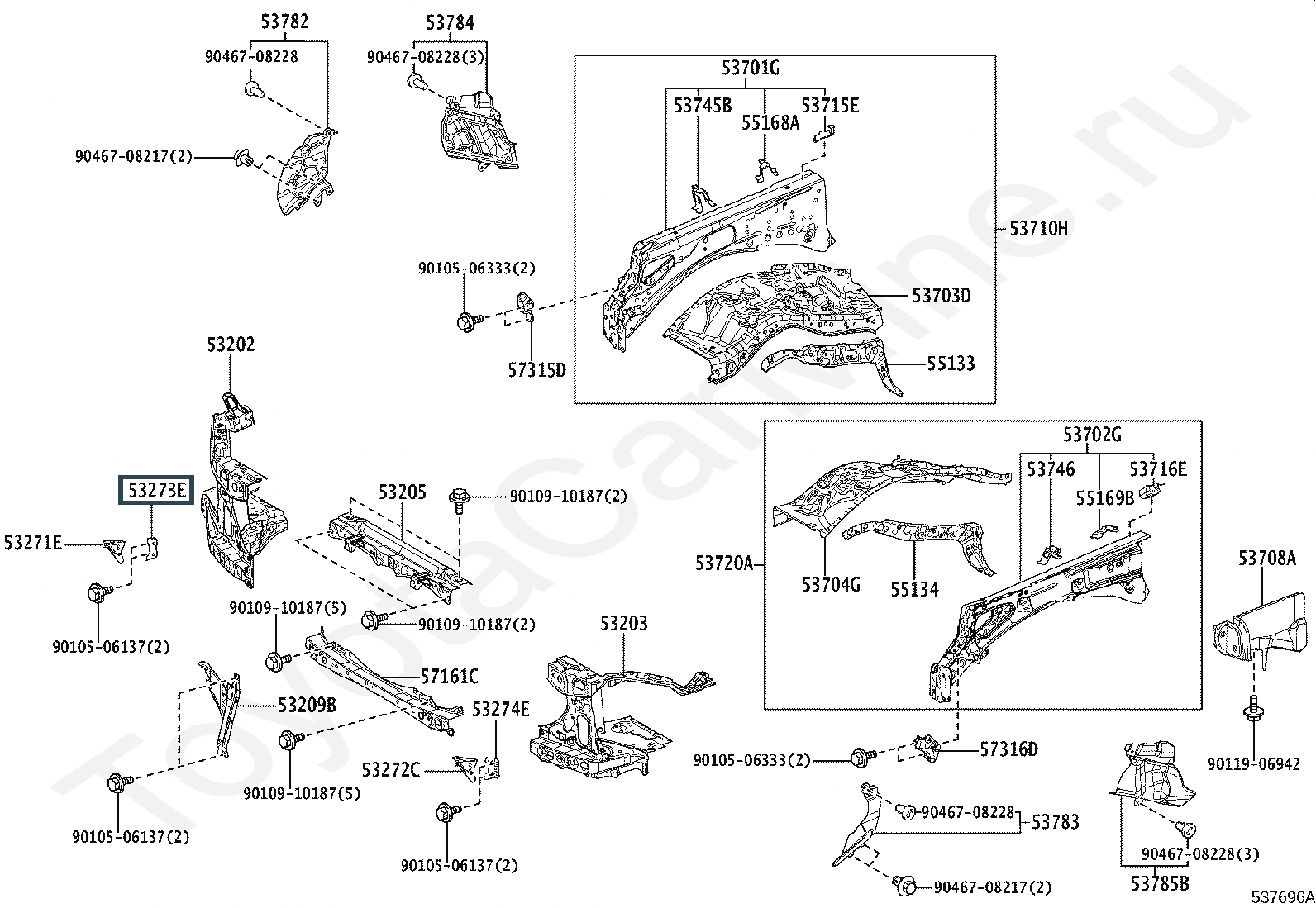 53273-60090, BRACKET, FRONT BUMPER ARM MOUNTING, RH