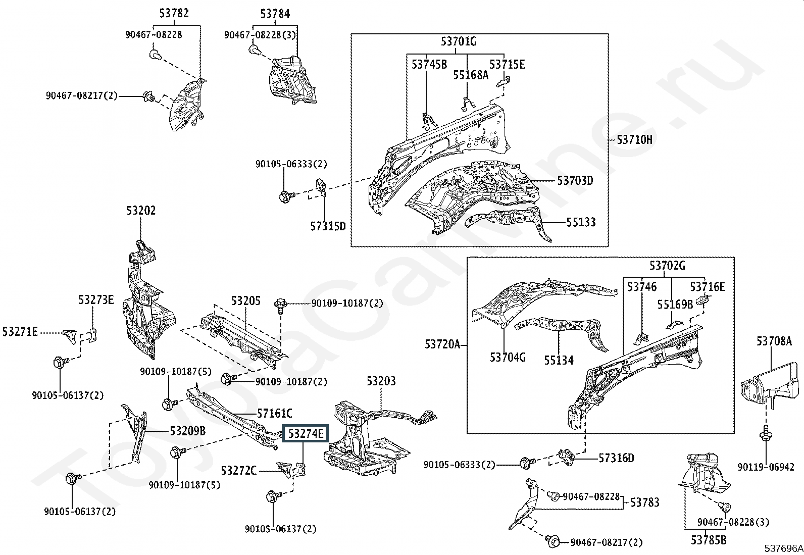 53274-60090, BRACKET, FRONT BUMPER ARM MOUNTING, LH