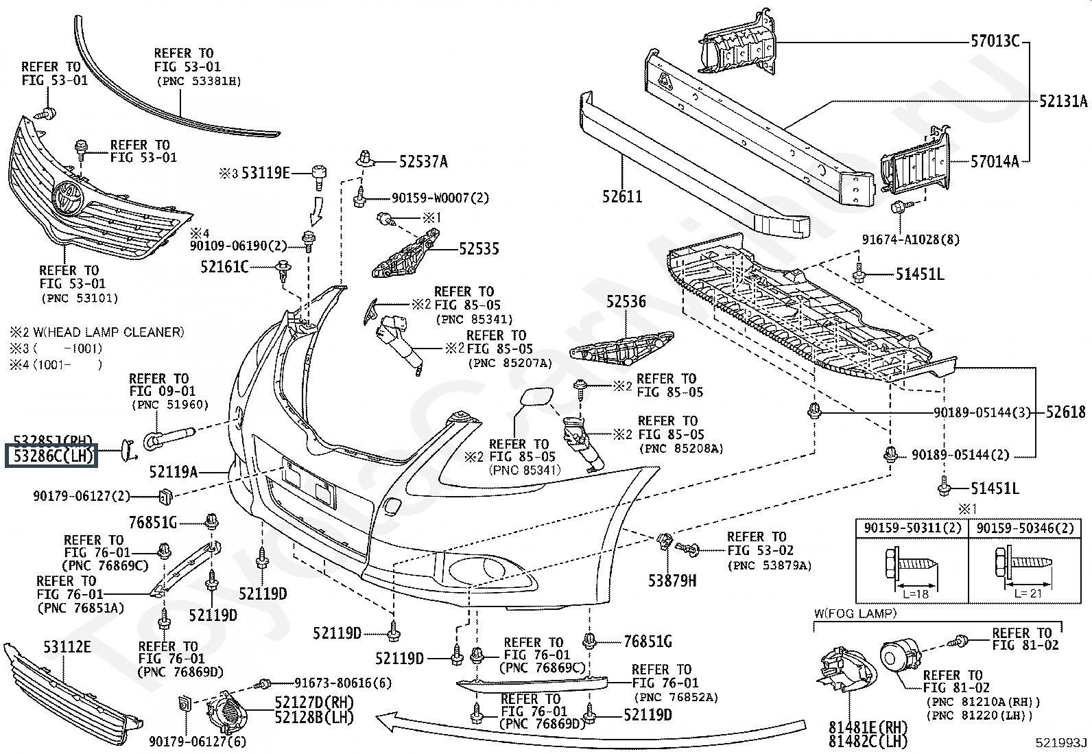 53286-05901, COVER, FRONT BUMPER ARM HOLE, LH