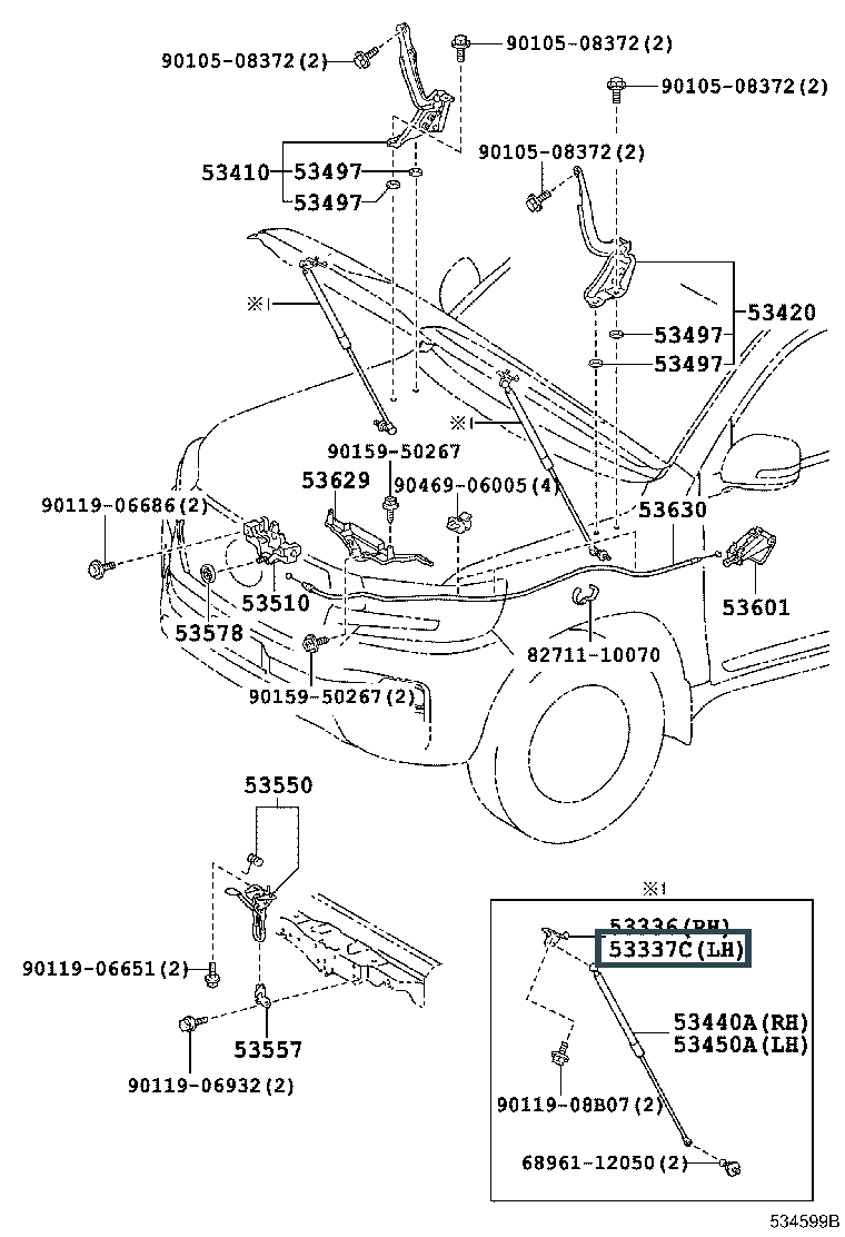 53337-60010, BRACKET, HOOD STAY, LH
