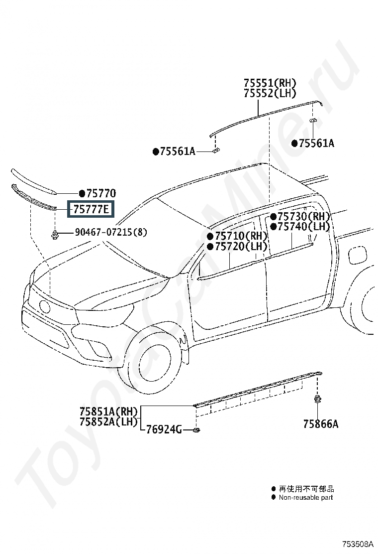 53393-0K010, PAD, HOOD FRONT MOULDING
