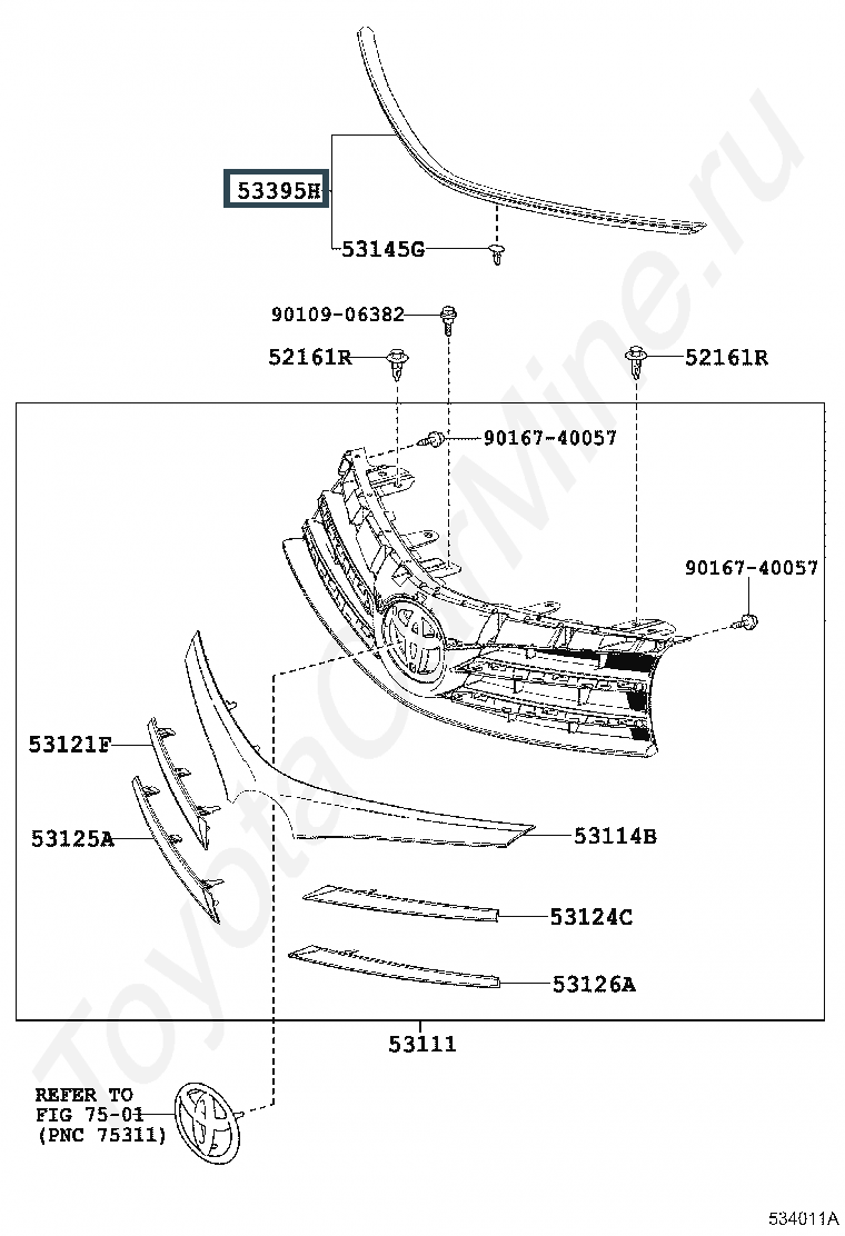 53395-02100, SEAL, HOOD TO RADIATOR GRILLE