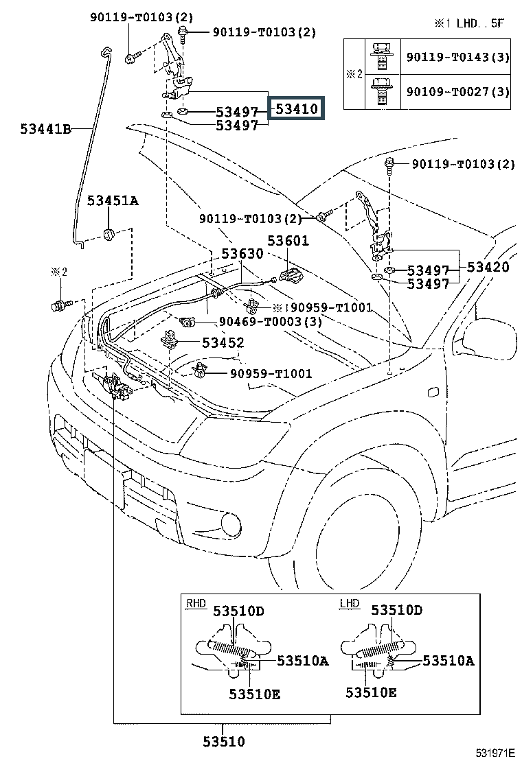 53410-0K020, ПЕТЛЯ КАПОТА ПРАВАЯ