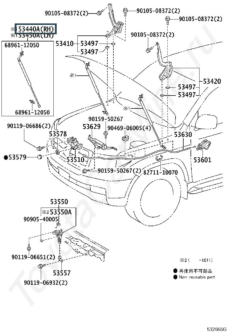 53440-0W340, SUPPORT ASSY, HOOD, RH