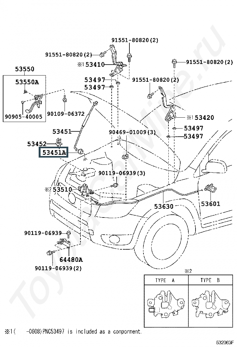 53454-42010, Клипса опоры капота