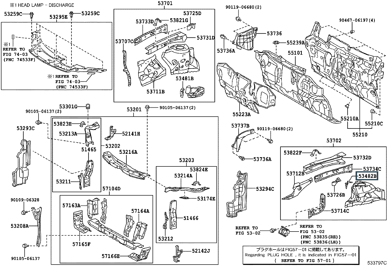 53482-33040, 5348233040 BRACKET, HOOD SUPPORT LH