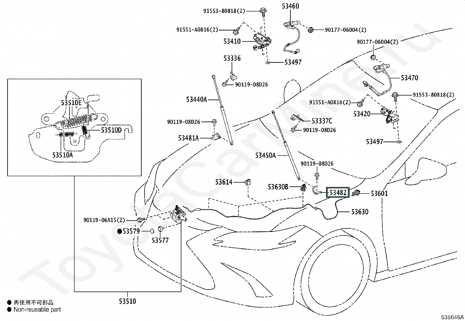 53482-33060, BRACKET, HOOD SUPPORT, LH