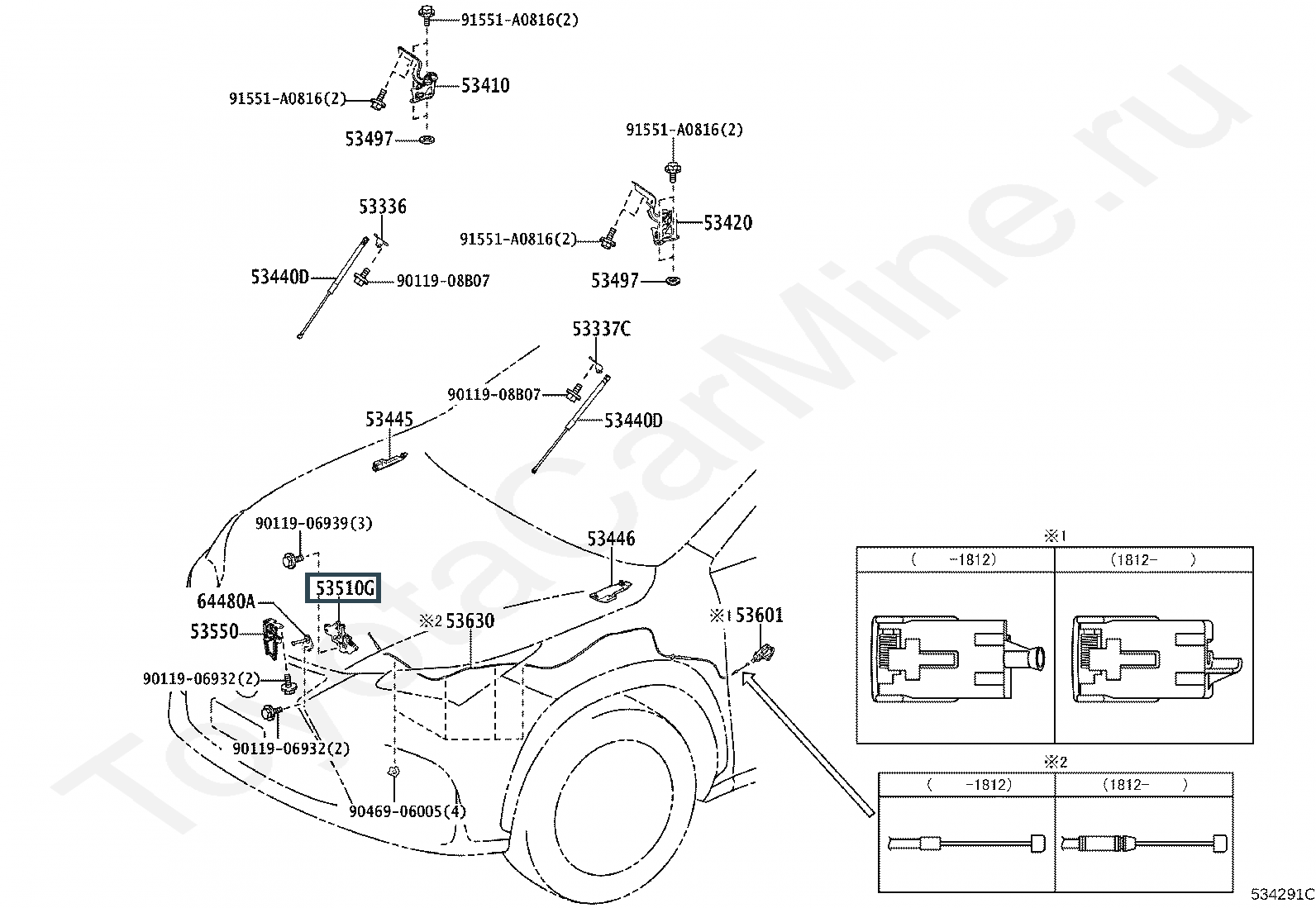 53510-78041, LOCK ASSY, HOOD, W/COURTESY LAMP SWITCH