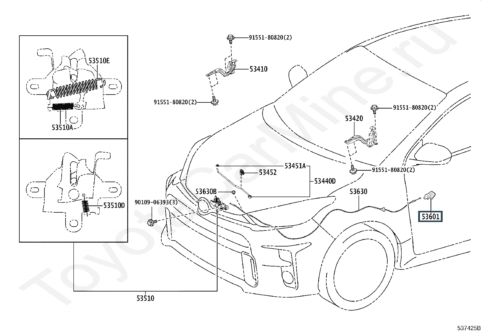 53601-30100-C0, LEVER SUB-ASSY, HOOD LOCK CONTROL
