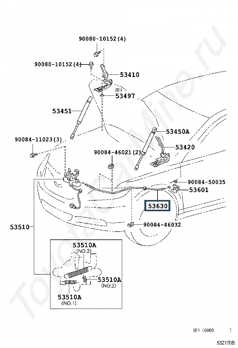 53630-06100, CABLE ASSY, HOOD LOCK CONTROL