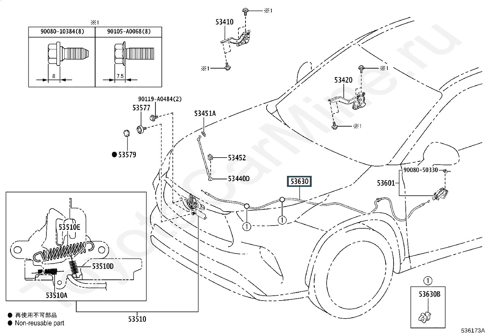 53630-0E090, CABLE ASSY, HOOD LOCK CONTROL