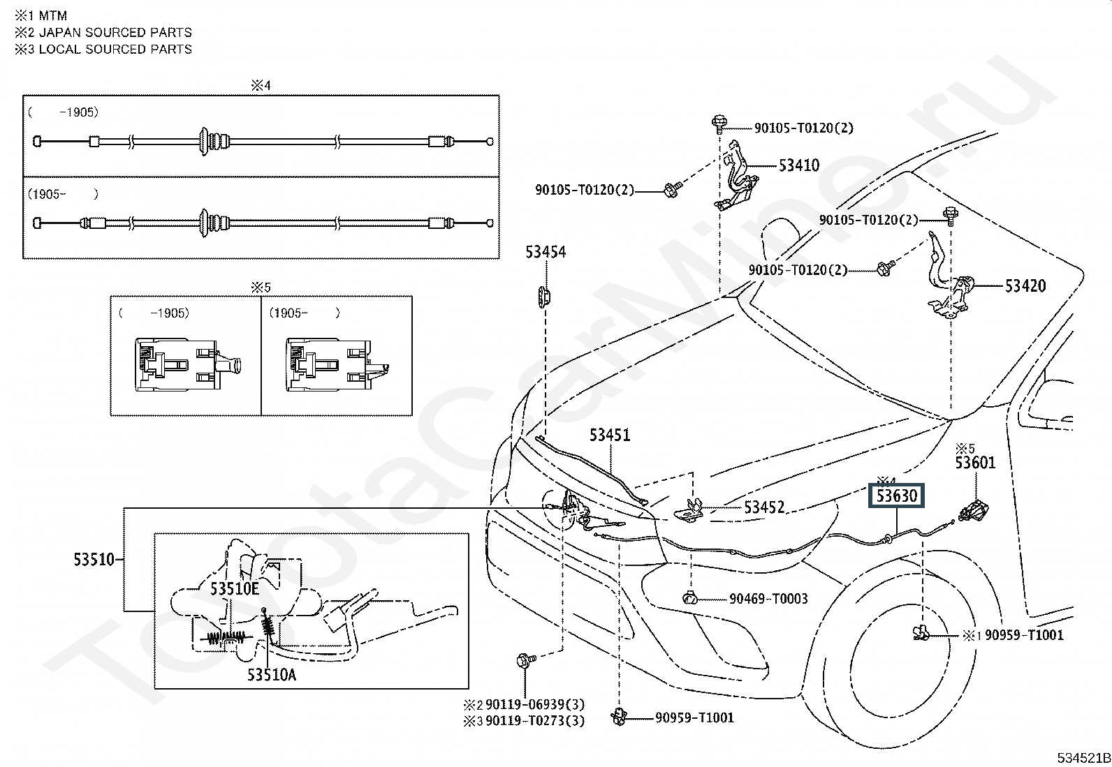 53630-0K190, CABLE ASSY, HOOD LOCK CONTROL